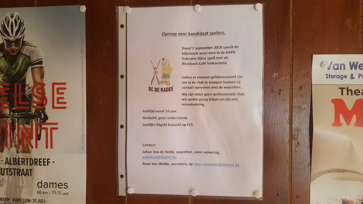 Closing two days a week keeps the place from turning into a nonstop bar, reinforcing its role as a steady community fixture rather than late-night nightlife spot. For anyone interested in experiencing an authentic bruin café atmosphere—the kind that Brussels and Antwerp locals often reminisce about—Cafe Volksvriend offers a genuine slice of local life right in Kapellen.